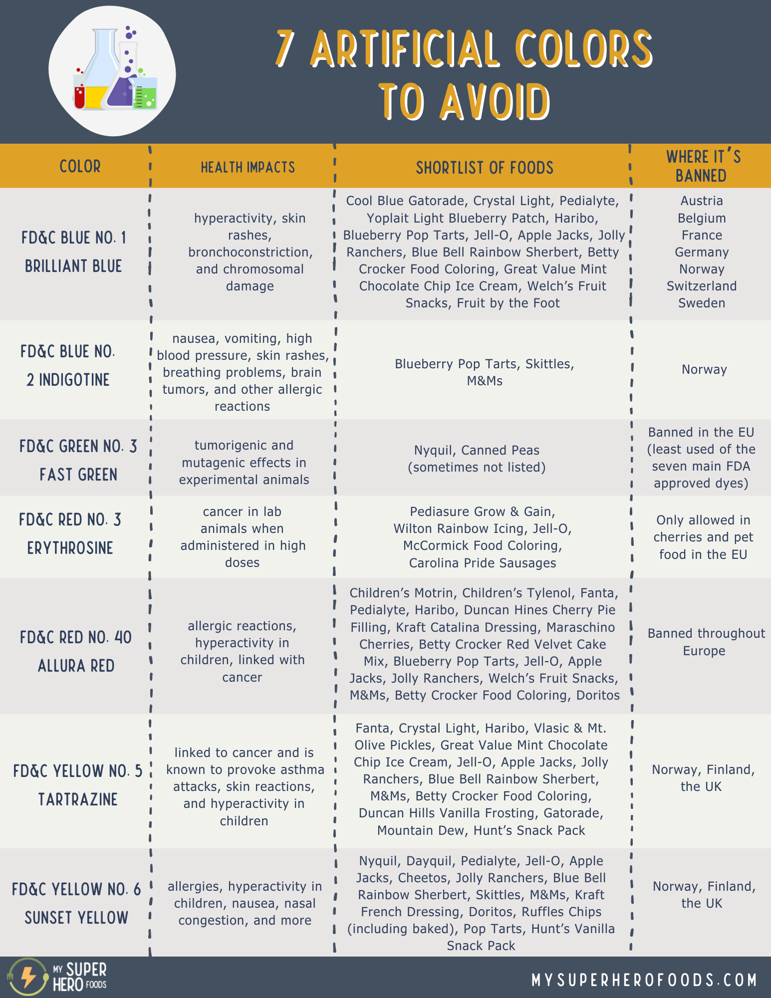 Products with dyes are already insanely processed and universally unhealthy. When you ban dyes from your diet, you automatically avoid much of the heavily processed junk in stores that is horrible for your health.