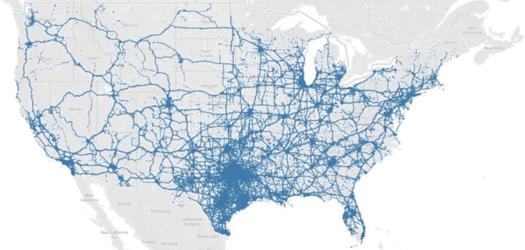 One of the maps published as part of the Heritage report, showing the movement of cell phone locations over the span of a month from migrant facilities in the U.S. near the border with Mexico to other parts of… pic.twitter.com/b8PMYdxbH1