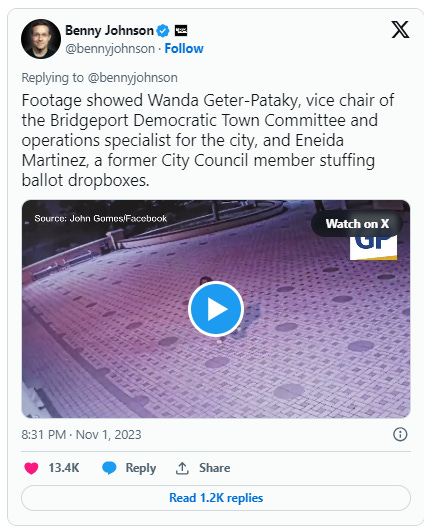 Under Connecticut state law, absentee ballots may only be submitted by the applicant, a family member, a police officer, an election official or a caretaker. According to Clark, the footage is direct evidence that state law was violated when "unauthorized partisans" engaged in ballot stuffing.