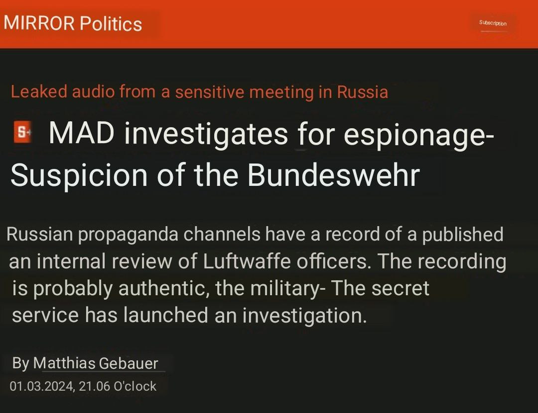 Bundeswehr Wiretap Bombshell - German Generals Exposed Planning Kerch Strike