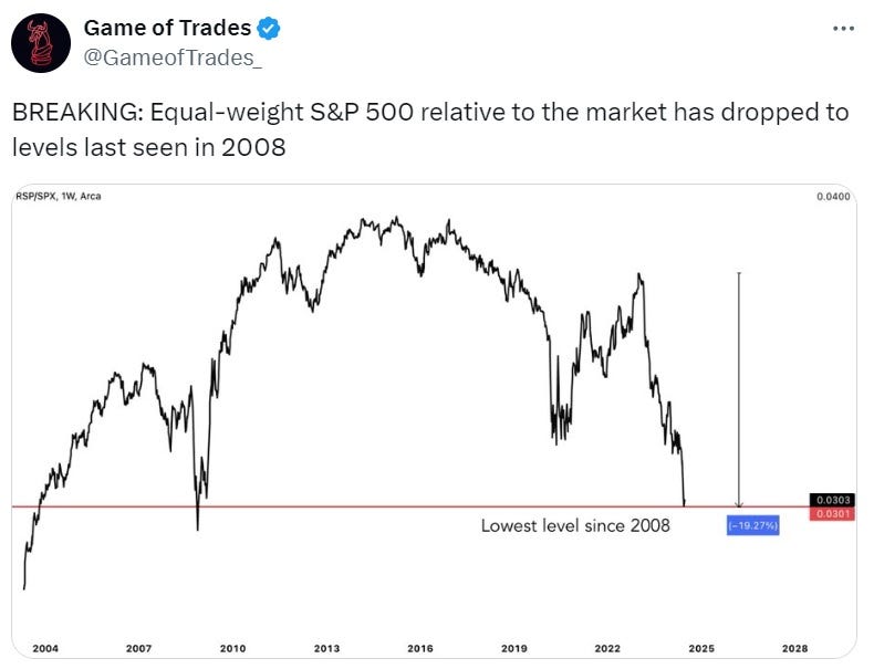 Since the 2008 Financial Crisis, household participation in stocks has more than DOUBLED. Since then, the Nasdaq has rallied 1,738% and the S&P 500 is up 702%. Since October 2023 alone, the Nasdaq and S&P 500 have seen 40% and 32% gains, respectively.