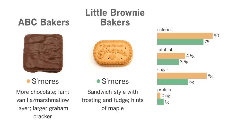 Cookies with the same name, but made by different bakers, can vary greatly in their appearance and ingredients. These differences also affect their calorie count, as well as their fat, sugar, and protein content. This is best illustrated by the S’mores below:8