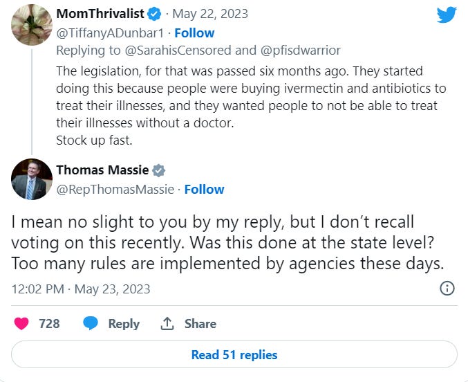 But NOW, the unelected, unaccountable, faceless, nameless, power-hungry monarchs at the FDA have decided that none of our farmers, ranchers, or hobbyists will be allowed to have those medicines anymore without visiting the vet for a prescription. This will cost the farmers tens of thousands of dollars a year in added vet bills, which they will then pass onto the consumer, forcing prices even higher during a time of record inflation.