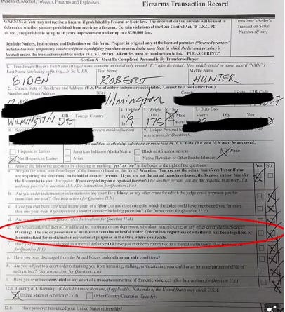 He was supposed to be spared from jailtime when Weiss, the U.S. attorney for Delaware, and his lawyers inked a plea deal where the younger Biden would plead guilty to two misdemeanor crimes of failure to pay more than $100,000 in taxes. Hunter had made more than $1.5 million in income in 2017 and 2018. As part of the plea deal, he would avoid prosecution for the gun charge as long as he met certain conditions over a 24-month period. Hunter had lied on a 2018 application to buy a gun. A photo of the form shows he answered 'no' when asked if he was an 'unlawful user of, or addicted to, marijuana or any depressant, stimulant, narcotic drug, or any other controlled substance.' Hunter wrote about his extensive drug use during that period of his life in his 2021 memoir, Beautiful Things. Republicans in Washington complained that the president's son had gotten himself a 'sweetheart deal.'