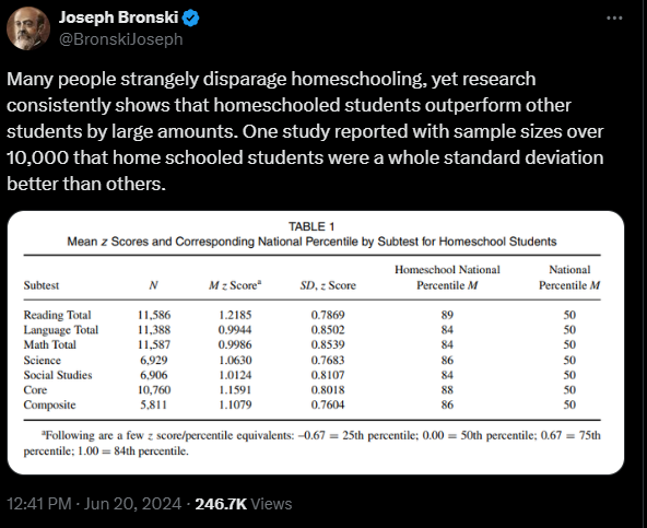 There are many factors that may impact this data and explain why homeschooled students generally outperform in many areas. At the very least, there is no reason to dismiss parents who decide to homeschool their kids, and it is well worth exploring why these students are academically outperforming.