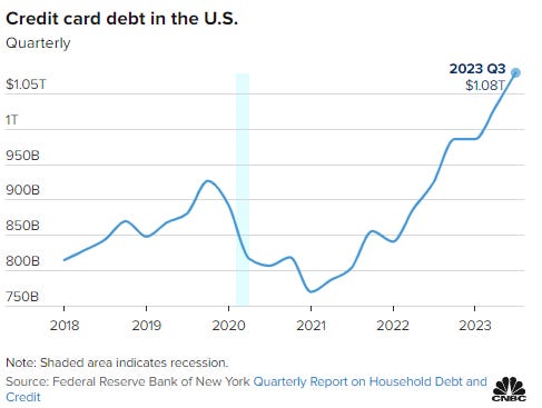 In the last year, credit card debt spiked to an all-time high, while the personal savings rate fell.