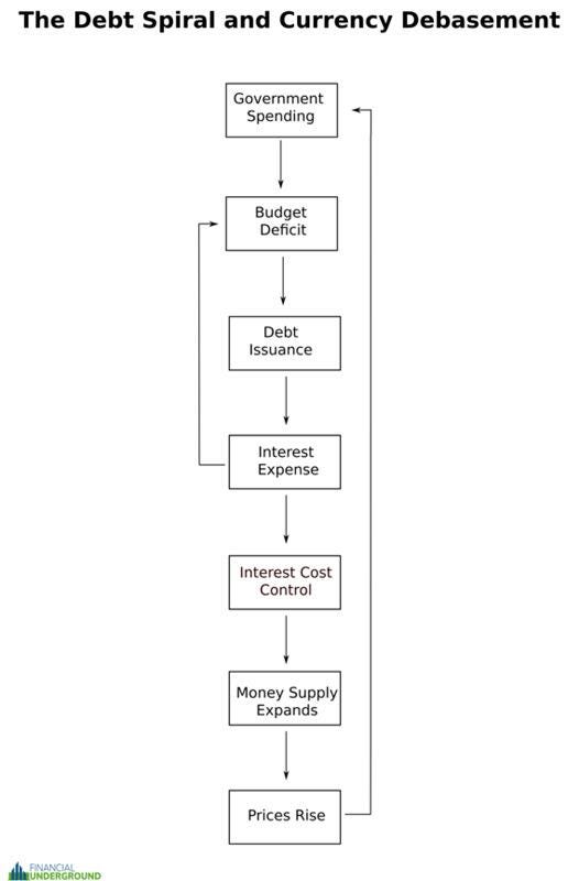 As outlined in the graphic below, there are seven key indicators to watch as the US government falls deeper into the self-perpetuating debt spiral that I think will culminate in the collapse of the US dollar.