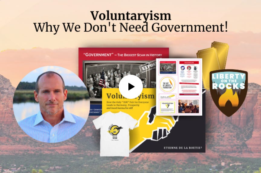 Etienne de la Boetie2, the founder of the Art of Liberty Foundation and editor of Important News, The Daily News and Five Meme Friday has announced an IndieGoGo campaign for his upcoming new book: Voluntaryism – How the Only “ISM” Fair for Everyone Leads to Harmony Prosperity, and Good Karma for All! Etienne’s 1st book: “Government” – The Biggest Scam in History… Exposed! revealed the illegitimacy and criminality of “government” and their partnership with monopoly media and monopoly academia. The new book reveals the solution: The good news message of Voluntaryism: We really don’t need “government,” and all the legitimate services provided by “government” would be better delivered by the free market, mutual aid societies, armed protective service companies, dispute resolution provides, non-profits and genuine charities. Discover how society would be dramatically wealthier and more harmonious with REAL freedom by pre-ordering a copy of the book today at: https://www.indiegogo.com/projects/voluntaryism-why-we-don-t-need-government/
