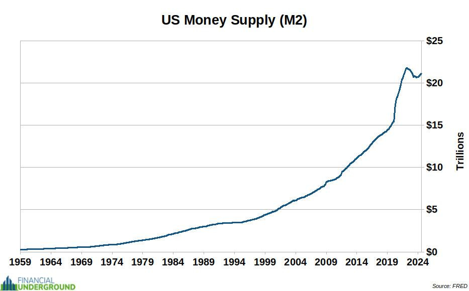 Since 2020, the US money supply has skyrocketed by 37%, an incredible change in such a short period.