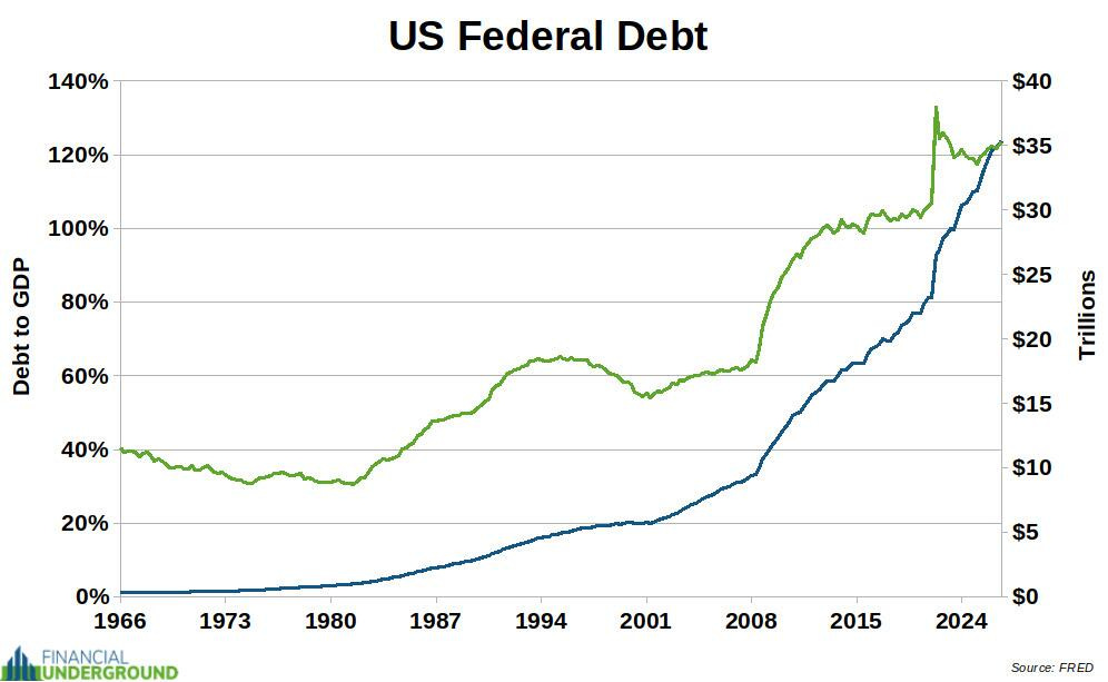 The federal debt has exceeded $35 trillion, representing more than 123% of GDP.
