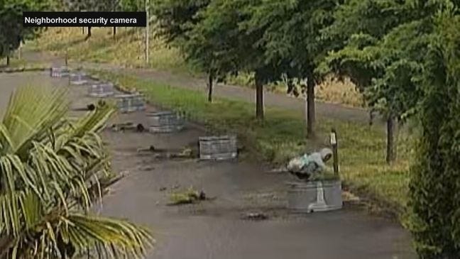 The push toward troughs hasn't been without pushback. Neighborhood surveillance video captured two people, at different times, pulling out the plants and throwing them in the street. (KATU)
