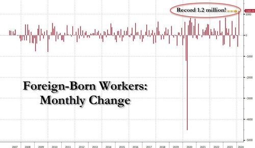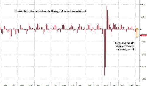 And then there was, of course, the great jobs replacement theory, only as we first showed well over a year ago, it wasn't a theory but practice, and following countless months in which native-born workers lost their jobs, including a near-record 3-month plunge to start 2024...