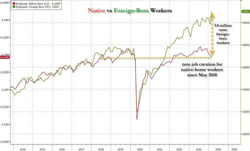 Or, as we first pointed out several months ago, not only has all job creation in the past 6 years - since May 2018 - has been exclusively for foreign-born workers...