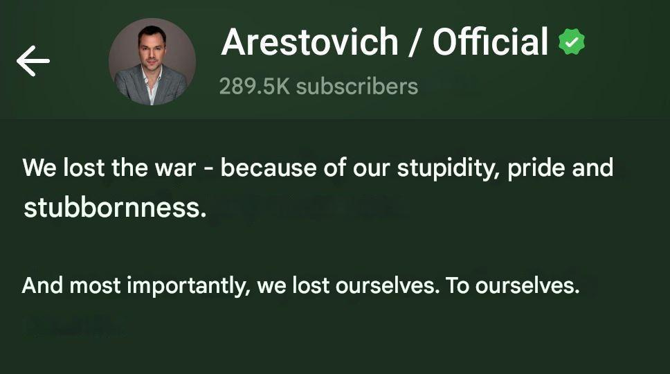 It was followed by a very frank admission where Arestovich, with no frills, declared: “We have lost the war.”