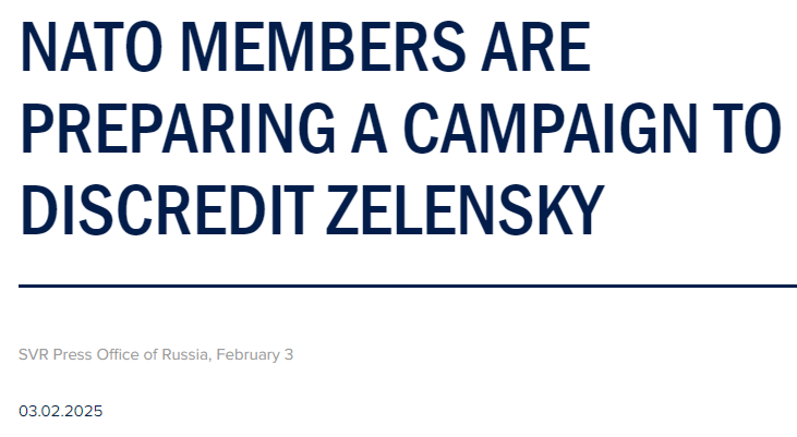 As evidence of this, we have an official release from Russia’s foreign intelligence service of the SVR, which outlines a plan by NATO members to discredit Zelensky as the kickoff to a campaign to eventually flush him in order to install someone more amenable to unconditional peace talks.
