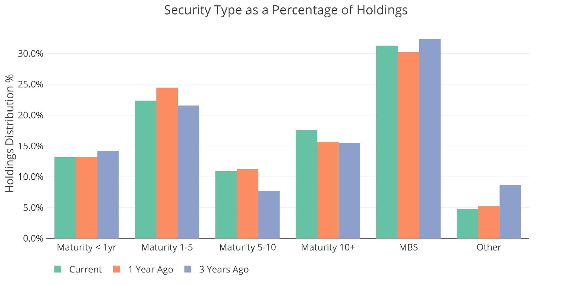 As the Fed continues to miss on the MBS reduction, the overall portfolio allocation of MBS has grown. MBS now makes up 31.3% of the balance sheet. Also, surprising is the surge in 10+ year maturity. Is the Fed quietly relaunching operation twist to contain the long end of the curve?