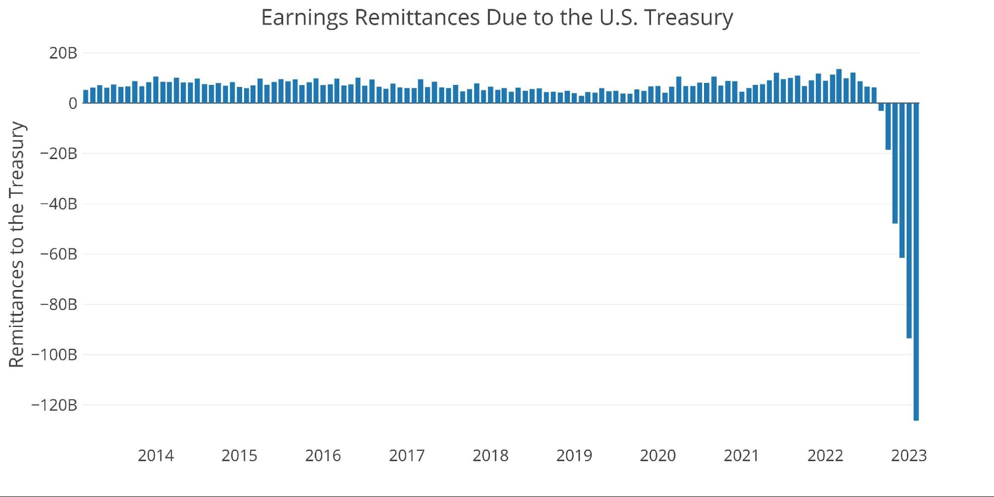 And with rising interest rates coupled with even this modest balance sheet reduction, the Fed is also bleeding money.