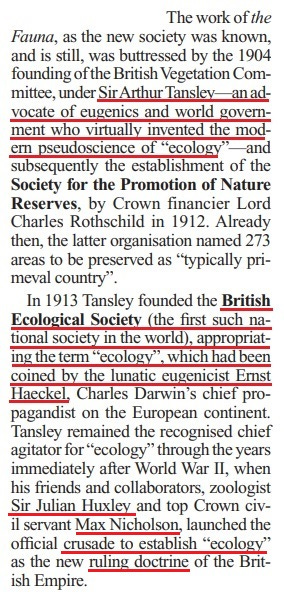 We focus briefly on the players around the British Ecological Society for a reason. After its founding in 1913, the progression of Huxley and Nicholson’s “crusade”, saw them both go on to establish the World Wildlife Fund with Prince Philip and Prince Bernhard, further consolidating this insane “ruling doctrine” that was being thrust upon the world.