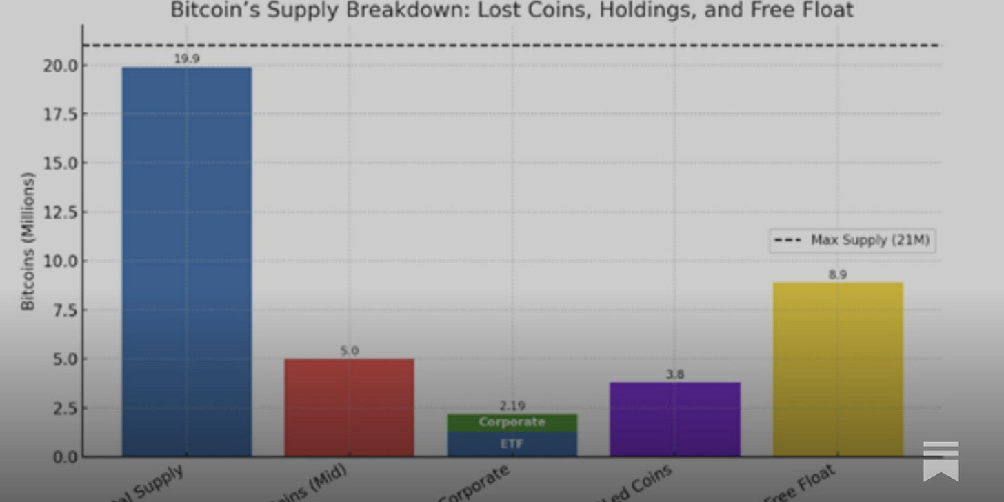 This silent supply shock, which dwarfs institutional demand and is ignored and underestimated by the mainstream media, positions Bitcoin not just as digital gold but as an asset with unparalleled rarity. It also has the potential to trigger a seismic price surge as the market wakes up to the scarcer than realised reality, and a free float barely half its total supply.
