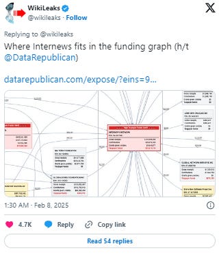 WikiLeaks published the bombshell report in the overnight hours that shows the massive taxpayer-funded state propaganda network - operating as a shady NGO - called "Internews Network":