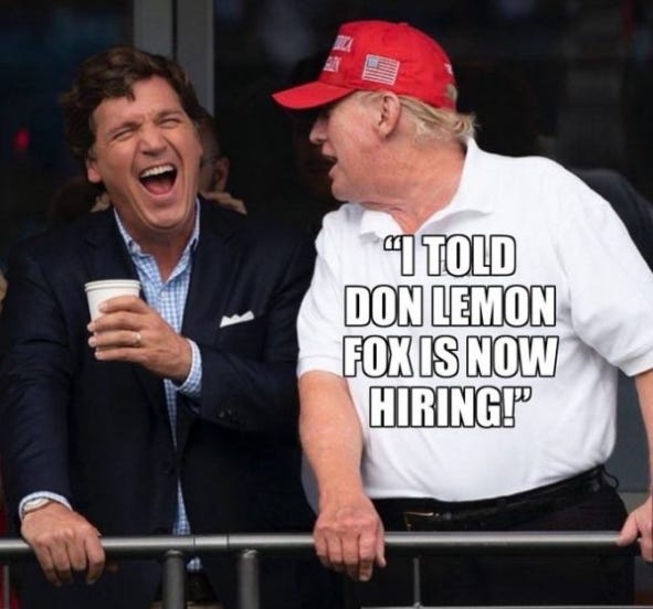 So don’t be duped by articles in the MSM. They are there to misdirect and confuse, not to inform. Have confidence in what you’ve seen with your own eyes and know to be true. Tucker Carlson was a victim of a system that no longer tolerates free speech, even-handed criticism or any divergence from the official narrative. Who doesn’t know this already?