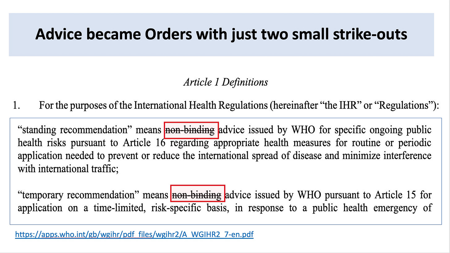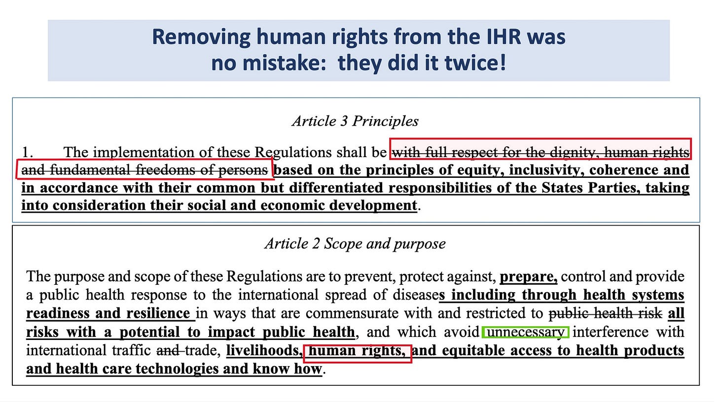 When they wrote the IHR amendments, crossing out human rights was no mistake. 'Cause they did it twice. The second time human rights were only to be ignored when NECESSARY.