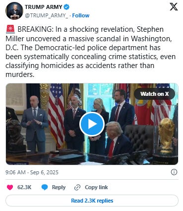 At an Oval Office press conference, Miller told reporters that when the results of the investigation are finally that, “It will stun you,” adding, “Even though D.C. had the worst crime in America–honestly measured–it dramatically understated how bad it was.”
