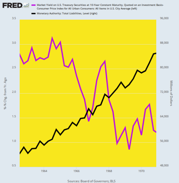 Inflation-Adjusted Yield on 10-Year UST Versus Fed Balance Sheet Growth, 1962 to 1970