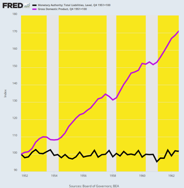 Change in Federal Reserve Balance Sheet Versus GDP, Q4 1951 to Q3 1962.