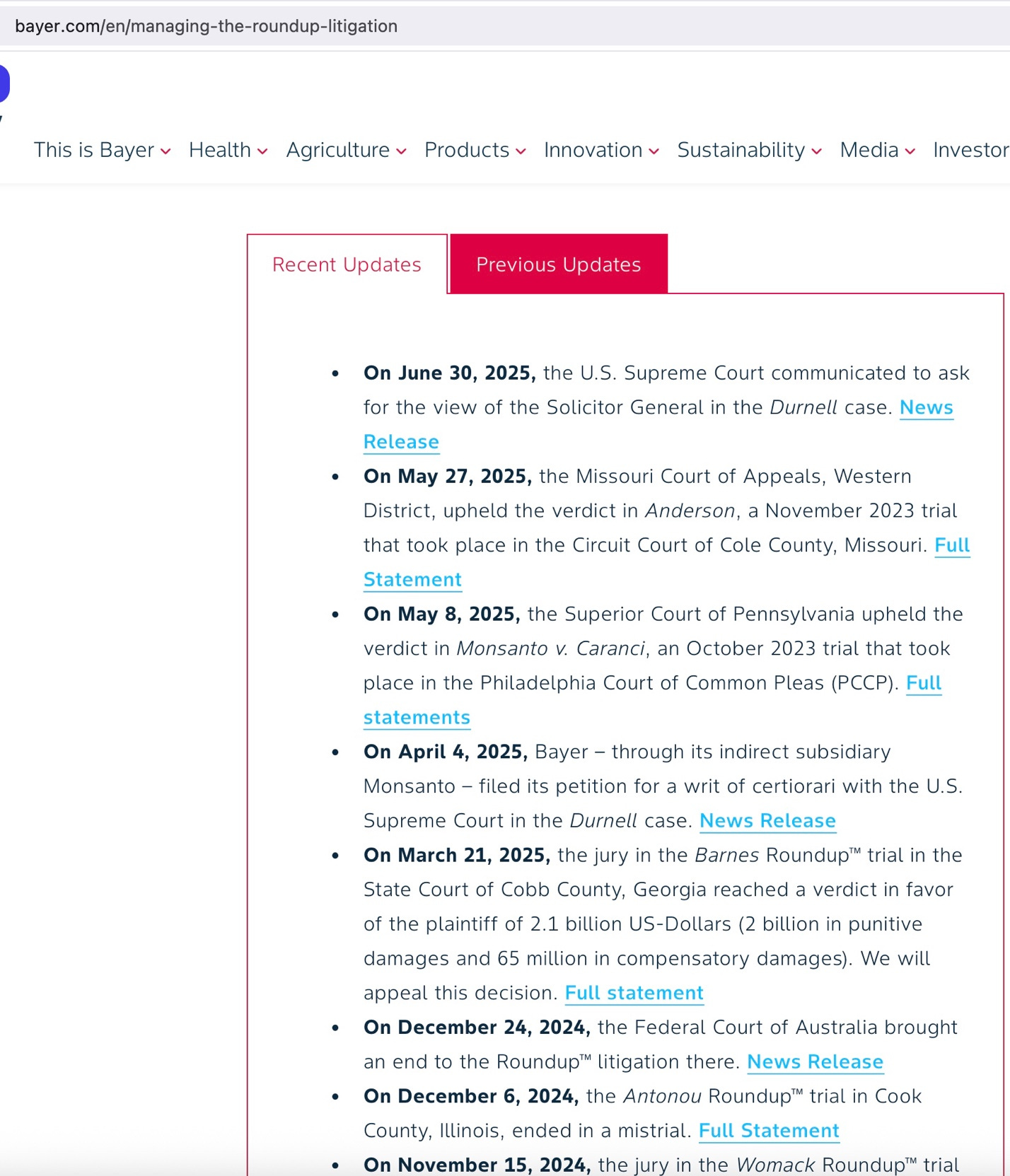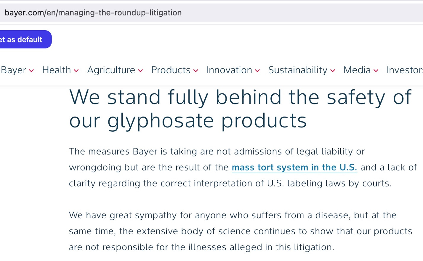 In 2023 Bayer hired a new CEO, Bill Anderson, a Texan, who vowed to take care of the glyphosate liability problem for the company.