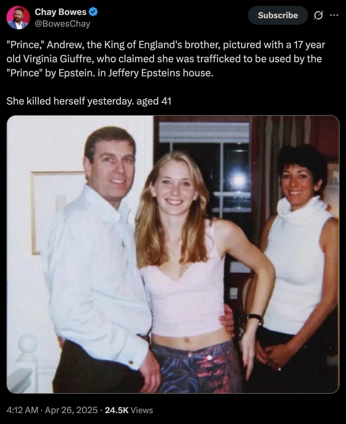 Let us not forget that there were actual human beings that were badly damaged and even murdered for these Mossad blackmail operations, such as one of the earliest survivors Leigh Patrick, who was found dead alone in a Palm Beach County hotel room on May 30, 2017. Or Carolyn Andriano, the young mother who helped convict Ghislaine Maxwell, who was found dead in a West Palm Beach hotel room. Or Virginia Giuffre, who spent over a decade exposing Epstein’s powerful network, only to have recently committed “suicide;” to wit: